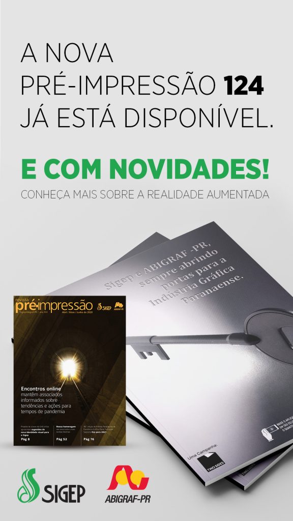 Coerente com a postura sempre defendida por seus diretores de que o empresário gráfico deve ver a tecnologia como aliada e não como inimiga, o Sigep/Abigraf-PR trouxeram a realidade aumentada para uma das capas da edição 124 da Revisão Pré-Impressão, veículo de comunicação das entidades. O recurso tecnológico, que permite expandir a informação impressa no papel de forma mais detalhada para uma tela de smartphone, por exemplo, foi aplicado em parceria com a Two Sides, importante organização de promoção da sustentabilidade da indústria de impressão e de embalagem.